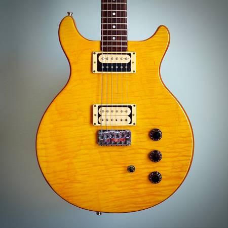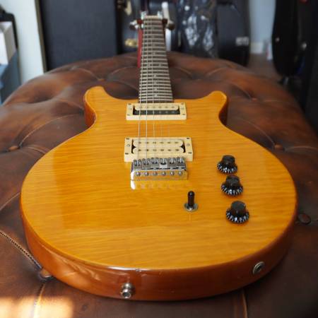 It features a mahogany body with a stunning flame maple flat top in its original transparent amber finish, paired with original DiMarzio humbuckers for clear, muscular tone with vintage warmth and bite. Honest playwear and fine lacquer checking throughout give it the kind of authentic vibe collectors love.