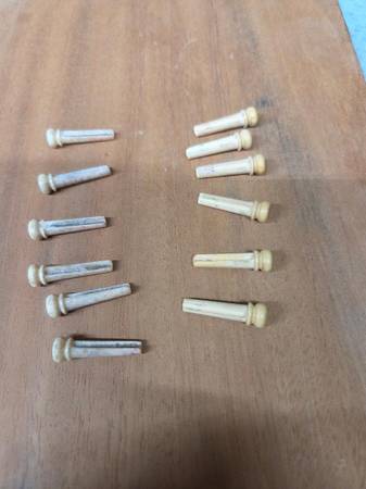 Fossilized walrus tusk bridge pins. 1 set is walrus & 1 is mammoth. slightly different colors. these sell for $140.00 plus. $100.00 EACH