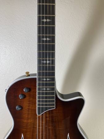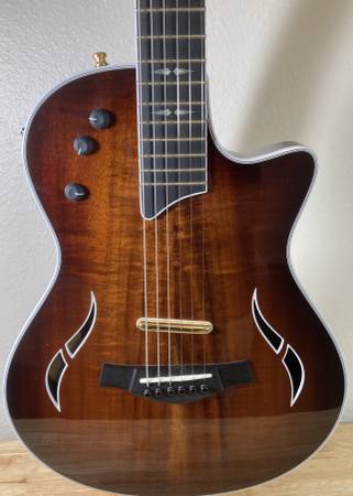 Beautiful solid Koa top. The T5z is more electric guitar oriented that other T5 variants. It has a neck humbucker (concealed), a bridge humbucker, an acoustic internal body sensor, a 5 way pickup selector, and a 2 band EQ (bass and treble) which results in a guitar with exceptional versatility. I don’t see and finish blems. It's in excellent condition. Included brown hard shell case is also in excellent condition. Made in USA. Cash only. No trades.