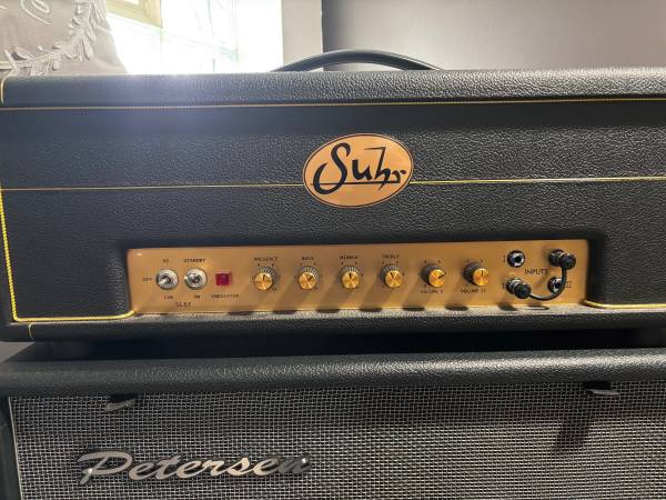 50Watt Handwired Plexi with EL34’s Peterson Cab is loaded with Eminence JS1250 (50Watt Josh Smith Signature Speakers). Great amp and great closed back cab.