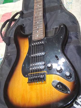 For sale: Squire by Fender Bullet Stratocaster HT, HSS Guitar. 07/2021. Note this model has one Humbucker pick-up, and two single pick-ups. The Fender serial number is in one of the pictures. You can go to the Fender site and look-up that serial number for further information. Included is the Rogue G-10 amplifier shown, and also a Fender soft case. You'll need your own guitar strap, and also a cord. Please view the pictures. Also check-out videos on You Tube to customize these guitars. I am at 314-Three 76-1883. Phone calls only, no texts. I am in Bridgeton, MO. off Old St. Charles RD. and Fee Fee RD. $100 firm.