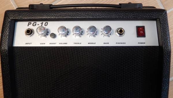 The PG-10 amplifier delivers with its 10 watts (RMS) / 25 watts (peak) plenty of power. It is great for practice sessions at home or in the rehearsal room. In addition to a Gain control with boost switch age for heavy distortion, the amplifier has a 3-band EQ for bass, midrange and treble and volume controls. A headphone jack on the front panel ensures silent practicing for late hours,