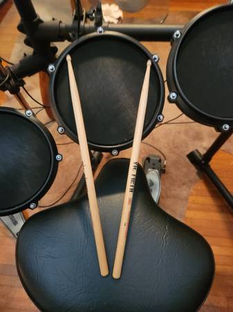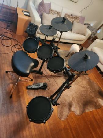 Sweet electronic drum kit in great condition. Im the first owner and have had it for 2 years. Includes a high quality throne and one pair of sticks. Amplifier not included (I have a Peavey Microbass Amp available for $50 if desired though). Develop and practice your drumming abilities on this high end piece of equipment.