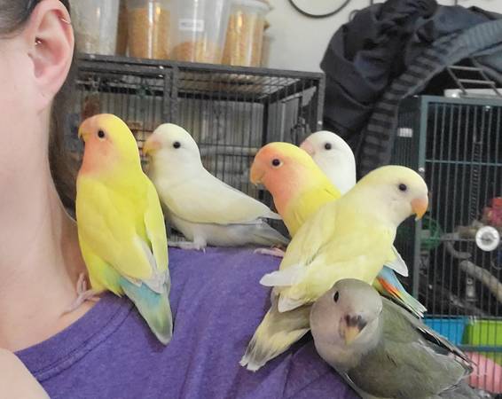 We currently have 6 newborn baby lovebirds that are between 7-8 weeks old looking for a forever home. They are fully weened and ready to leave and we'd like to find people looking for a well behaved and healthy baby to take home.