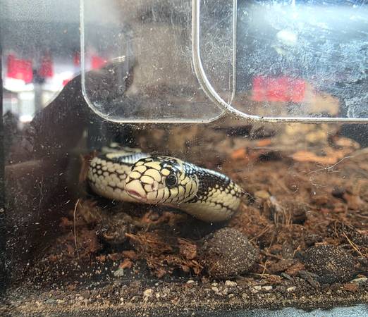 I have a cute young kingsnake that im not having much luck with. He is very active, great eater. He has not bitten anyone, or been aggressive. Th I ugh he stalks our cats through his cage , I think he is just waiting to get big enough to eat them. 🤣 just isn't interested in being handled. My young son is pretty freaked out by him, so probably best to rehome. I call it a he, but im not actually sure of the gender. His name is Frankenstein boop noodle. Rehoming fee is 50 or willing to trade for a young bearded dragon, or leopard gecko.