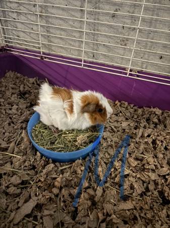 5 week old one male guinea pig. They are herd animals, so I would prefer him to go to a home that already has a male guinea pig or planning to get another for a buddy. Located in Ste Genevieve Missouri. He is the littlest, cuties, and tamest out of the litter. Pick up only.