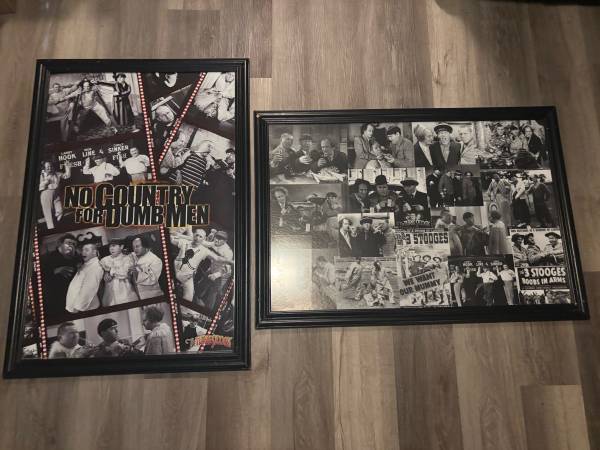 Three Studges pictures and it comes with the fames. 39 3/6 x 27 3/6in for them both. Very good shape, will have to be pick up delivery