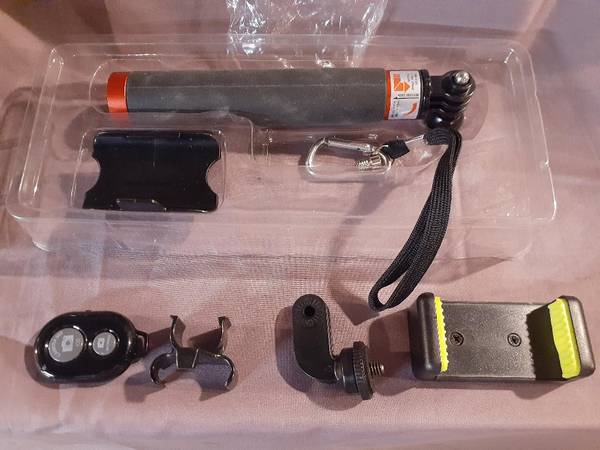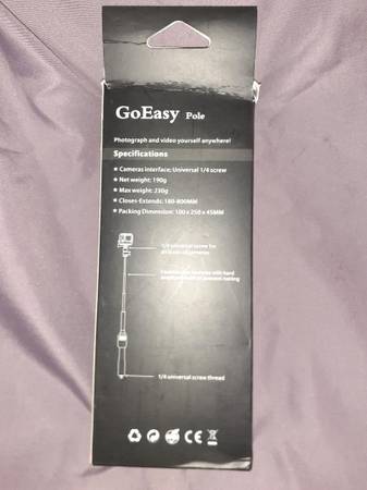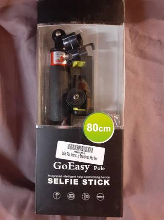 Go Easy Pole selfie stick in original box, 80cm. As-is per photos for $5 cash. Serious inquiries only and no ghosting please. Thanks for looking!