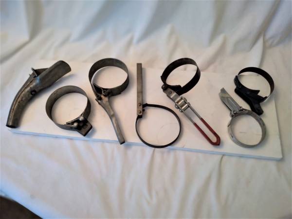 WRENCH FOR VARIOUS OIL FILTERS 6 EACH FOR 25.00 STEEL TOOLS - FROM TAIWAN, USA AND JAPAN. 5 with handle application 1 with rachet application sizes: 2.25 to 3.25" 3.25 to 3.5 3.75 to 4 3.25 to 3.5...