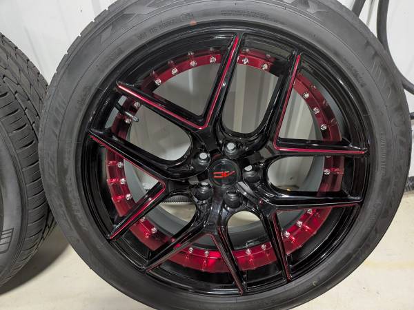 Four 20"x9" AC Wheels Divino Gloss Black with Red Milled and Inner Deep Concave Rims LIKE NEW.