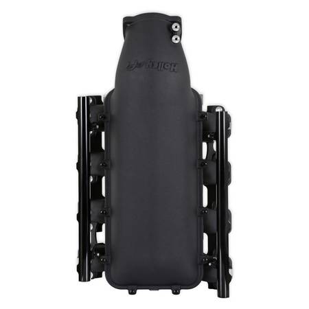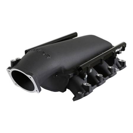 The standard plenum top throttle body flange has a 105 mm opening to work with throttle body part number 112-581 or similar models. The top-feed plenum base intake manifold is designed with a reduced overall height to fit under a stock or mildly modified hood. The Lo-Ram provides a low profile modular intake manifold suitable for use with plenum mounted air-to-water intercoolers for boosted applications. Various Hi-Ram plenum top options are available to compliment the top-feed base intake manifold kits and fabrication flanges are offered to aid the fabrication of plenum tops for custom installations. Available for OE direct fuel injection only and with port fuel injection provisions.