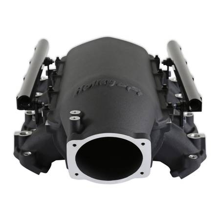 The Holley GM Gen V LT Lo-Ram intake manifold kits are designed for GM Gen V LT engines equipped with GM LT cylinder heads. These intake manifolds will work with OE or aftermarket cylinder heads. The Lo-Ram intake manifolds are designed for forced induction (supercharged or turbocharged) engine applications with peak power at 7,000-8,000 rpm depending on the application.