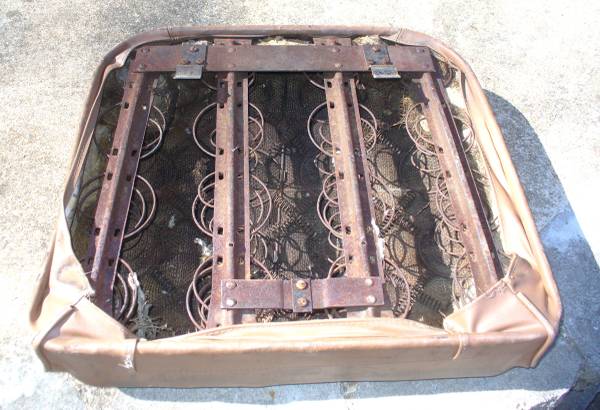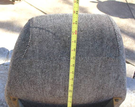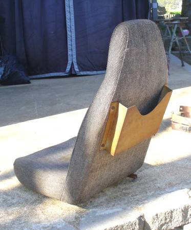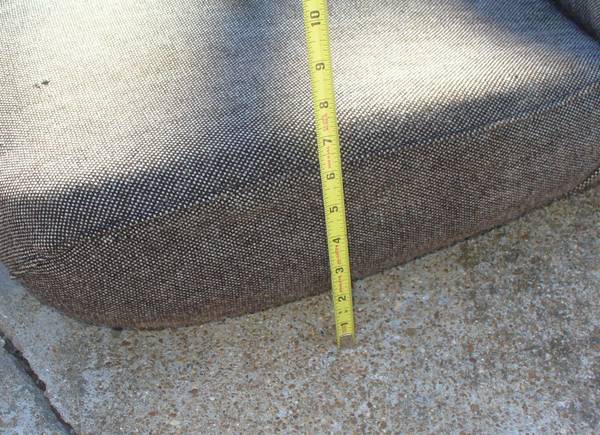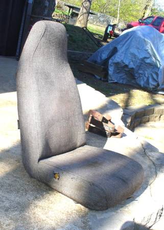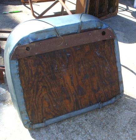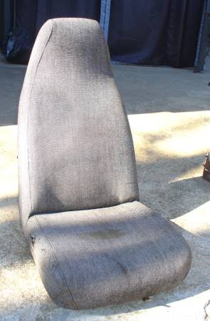 ----One single seat out of a 1960's Ford F-750 dump truck. This is a fixed seat (Not adjustable). 28" tall top of seat back to floor. 13" top of seat cushion to floor. 23" wide. Cushions easily remove from frame, Couple of holes and stains. $30.