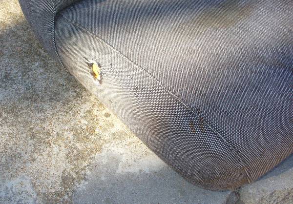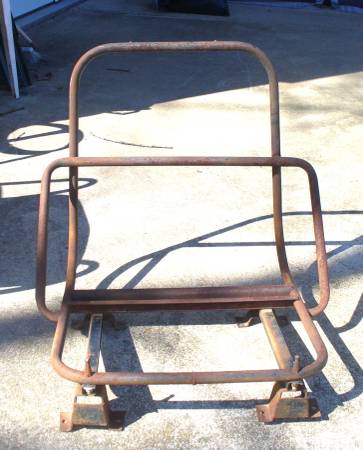 ----One single seat out of a 72 DJ5 mail jeep. This is an ajustable slide seat. 33" tall top of seat back to floor. 7" top of seat cushion to floor. 18" wide. Metal book or manual holder mounted on seat back. Couple of holes and stains. $30.