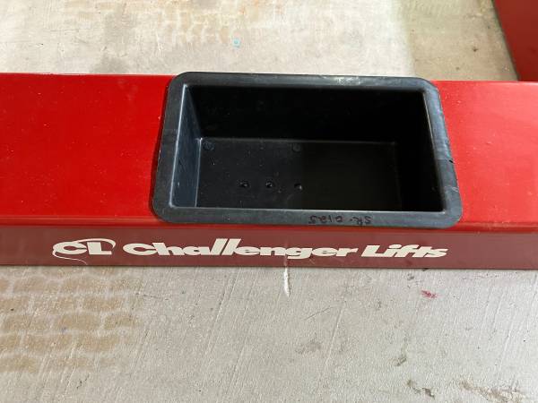 Call number listed and leave message if no answer. I do EMAILS. Have a 2012 Mid-rise Challenger SRM10,000 lb lift that has been completely redone. Has been sand blasted and painted back to Challenger red. Has two brand new Challenger hydraulic cylinders, 4-new built in trays and new hydraulic hose. This has all the extra options that was bought at the time of purchased that don't normally come with it. All of the decals were replaced with originals. Everything works as it should. Comes with owner's manual. Take $5,000 Cash. Price is firm so don't waste my time with an offer-Will be deleted! If it's listed, then it's for sale. No Holds or shipping. Will not respond to emails, phone numbers