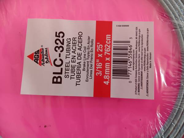 New 3/16" - 25 coil of metal brake line, AGS BLC-325, $20.00@, have 10 coils available Bill