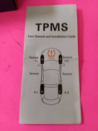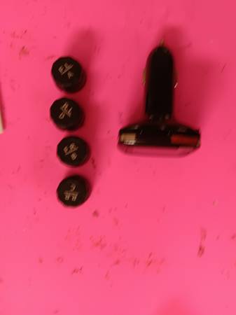 New Universal Tire Pressure Sensor Monitoring System, 4 sensor that are attached to the valve stems and a monitor that plugs into light. For car , truck or trailer. $40.00 Bill