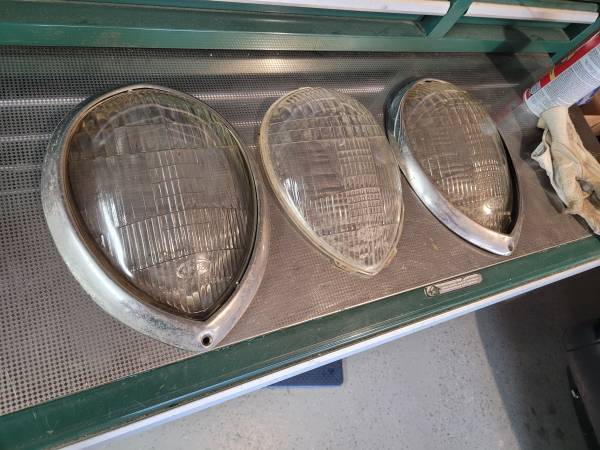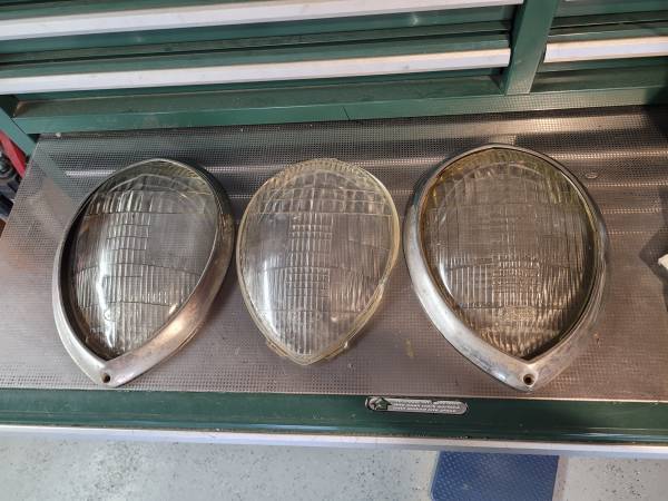 1937 1938 1939 Ford Teardrop Headlight Lens, 2 Bezel Rings will ship