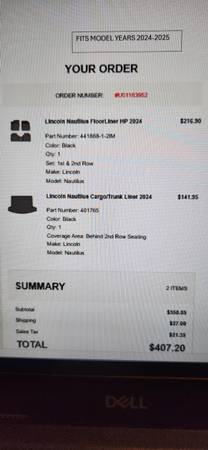 Complete set of HP WeatherTech floor mats for 2024-2025 Lincoln Nautilus 1st & 2nd Row (441868-1-2IM)--Black Cargo Mat (401765)--Black
