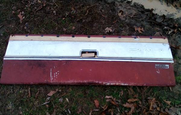 Older model GMC tailgate. Paint and Chrome is pretty good on the outside. Missing the GMC emblem. Surface rust and some rust through on the inside. Located in Salem, MO. Great for benches, deco, or...