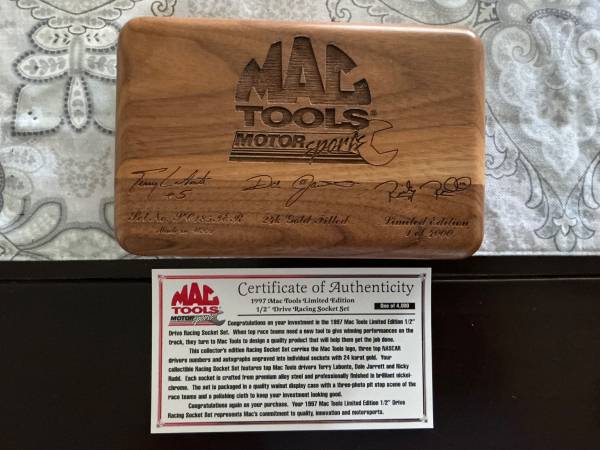 NEW in original engraved walnut box. See attached photos with details. Smoke free. Perfect Christmas gift for NASCAR collector! Reply to pick up. We will email you back. Thanks!