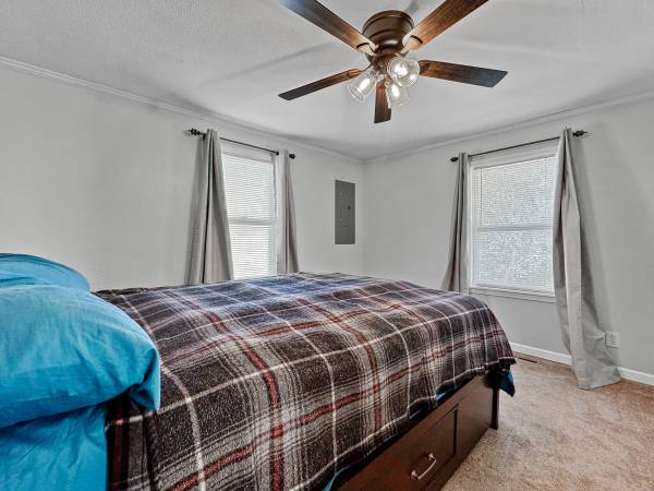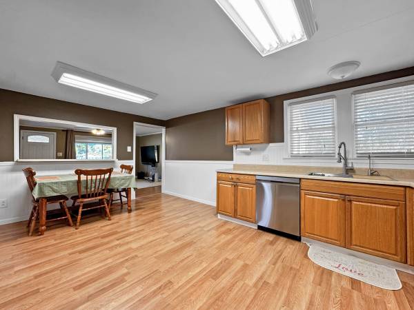 This spacious PET FREE/SMOKE FREE 3 bed 1 bath homes has one of the best floorplans we have seen in a home of this size at just under 1200 sq. ft. and lots to brag about! Modest on the outside - fantastic on the inside. The interior of this home had a full gut and remodel approximately 6 years ago and taken down to the studs (with the exception of the kitchen). That means, newer doors, wiring, insulation (special sound deadening & energy rating), updated plumbing, new doors and trim, & more. Situated on a triple lot .47 acres, you will have room for all of your hobbies and expansions. A detached 24 x 25 shed can easily accommodate your cars, toys and hobbies. A convenient carport style covered patio just off the mud room is the perfect place for picnic table talk, firepits and back yard barbeques with friends. Nice size living room with 2025 triple picture window is the perfect place to showcase your holiday decor. Pristine laminate flooring and fresh paint throughout. The massive eat in kitchen has a pass through breakfast bar into the living room. Tons of oak cabinets, Wainscott finish, 2025 dishwasher, farm style sink (with tons of accessories), double windows, electric stove, neutral counters, and stainless refrigerator with a window. A mud room/laundry is just off the kitchen with a walk door out to your covered patio. Gas furnace and gas hot water heater. Nice size pantry and coat closet in mud room. Nest thermostat. Master bedroom has double closet and carpet. Bed #2 could be a great office space and has a large closet with shelves. Bed #3 also nice size with carpet. Centrally located bathroom has tub/shower combo, comfort height vanity, linen cabinet above commode and medicine cabinet. The garage features new electric and new LED lighting. Roof on house and shed 1 year old. More updates include Front widow and exterior doors 2025; Bedroom windows 2018; paint 2025; Carpet and bath flooring 2018; Bathroom remodel 2018; garage electric and new LED lighting 2023; Insulation 2018 is Rockwool which is fire resistant and sound deadening. New garage wiring; new kitchen sink 2025; reverse osmosis filter on kitchen sink, roof 2024; HVAC 2018; Water heater 2018; updated light fixtures throughout. This home is a rare opportunity, and move is move in ready.