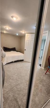 In - Law suite fully remodeled, fully furnished large 1 bedroom with queen size dreamcloud mattress in a 17ftx10.9ft room, private 1 bathroom tub and shower. Comes with a private brand new kitchenette, full size fridge, microwave, electric cook top, toaster, coffee maker and more. New flooring, new paint and more, with shared laundry room and shared fitness room. This is on the first floor of my house. Has a seperate entrance.