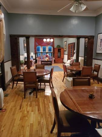 Home away from home, seven (7) large fully furnished Studios. Each studio comes with Smart lock entrance, refrigerator, smart tv, desk, high speed internet, microwave or airfryer, queen size bed and plenty of storage with dresser and walk in closet. Fenced in yard with private secured lighted parking so you don't have to worry about finding a parking spot or parking on the street, you have your own secured spot. If you need more at home kitchen space there are two (2) full sized shared kitchens with utensils cups plates, stove, microwave and refrigerators. We are less than 10 minutes from major hospitals, collage and entertainment such as Fox theater, powell Symphony hall, Zoo and forest park. Smart locks on all the doors for your privacy and convenience, no keys needed you get to pick you own digital code. Come stay in a cozy converted historical mansion with over 12 foot tall ceilings and plenty of space to either mingle with fellow professionals or stay in the quiet comfort of your private cozy studio.