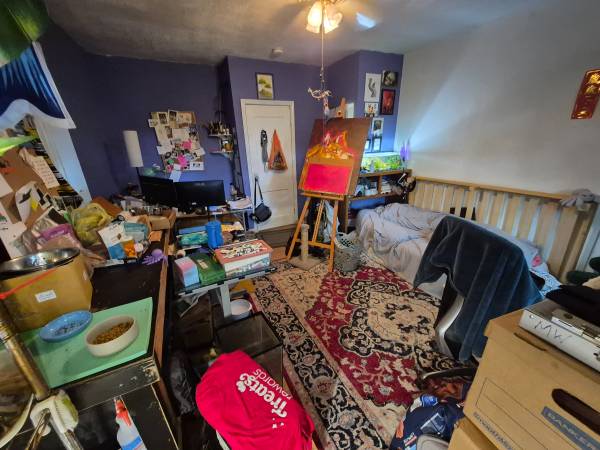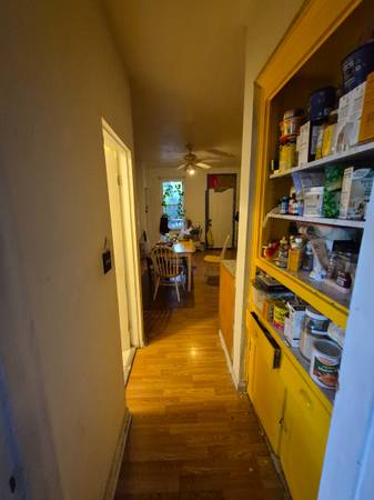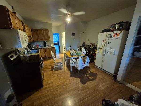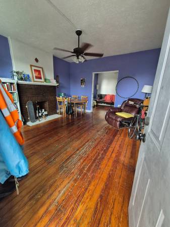 This house is a 3 bedroom and is occupied by 3 people who live together as friends. One of the rooms will become available on October 1st. The bedroom that will become available has a private porch. The house has lots of communal space, such as 2 living rooms, a kitchen with dining area, a backyard with a porch and a basement. Your future roommates both work full time, keep the house tidy and will occasionally share a meal together to socialize.