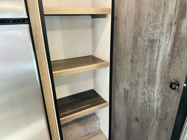 Spacious Living and Kitchen area. Jack-knife sofa. Booth style dinette. Entertainment center with fireplace. Pantry.