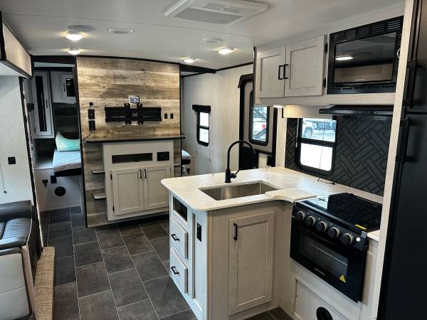Power stabilizer jacks. Electric Awning. Outdoor Kitchen. Large pass through storage. Flip down exterior steps.