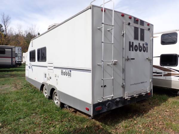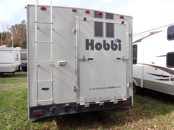 This is a 2007 HOBBI HK220 that is a small toy hauler or cargo. An unusual trailer that can be used for a multitude of situations. The interior is good and can sleep 4 of ??? It has a full kitchen and storage. Lots of space for toys and people. Chassis is good and it tows well. The title is rebuilt due to minor hail. The trailer is located at Second Chance RV's in Union MO. Please call John O'Neil with questions 314 378 3109