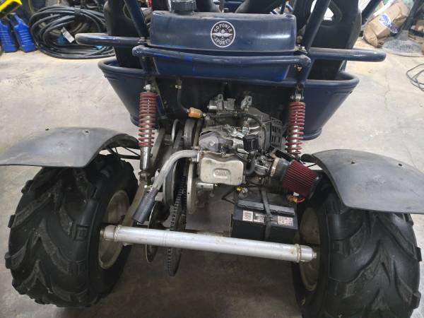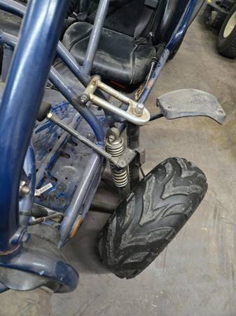 Fresh 420 harbor freight engine and clutch. New steering and front suspension. Tires are in good shape. Fits two adults tops out around 35 mph and has new brake pads. Its dusty but kept in a garage.