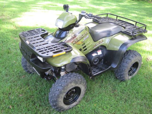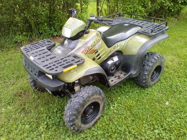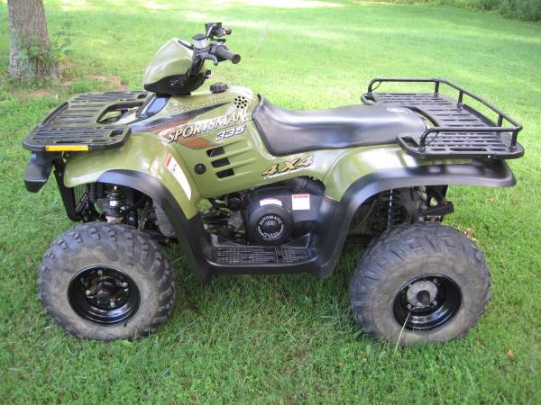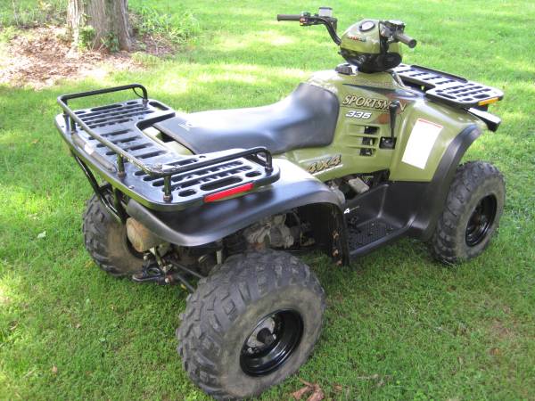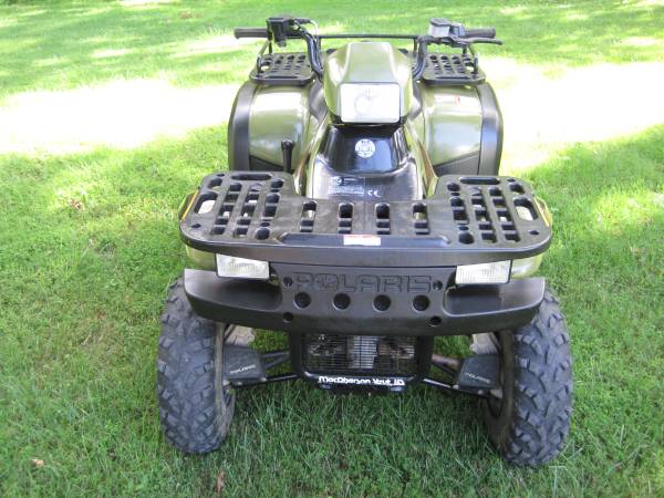 I don't text. Cash only. 1999 Polaris Sportsman 335 4x4. Shows 14xx miles and is in nice shape. It was shined up for the pictures but has less shine now. The last picture is how it looks as of 5/7/25. It starts and runs good. Good low end power. Newer oil change, greasing, and a new air filter. As soon as you turn the key on the oil cooler fan runs. Low beam light bulbs are burned out. One mounting tab for the air box is broke off from a previous owner. One floorboard has some damage (pictured) and one fender flare (pictured) It looks like the toolbox was never used, still has factory tool bag, full. Doesn't have a title. I try to check email once a day but only during the week.
