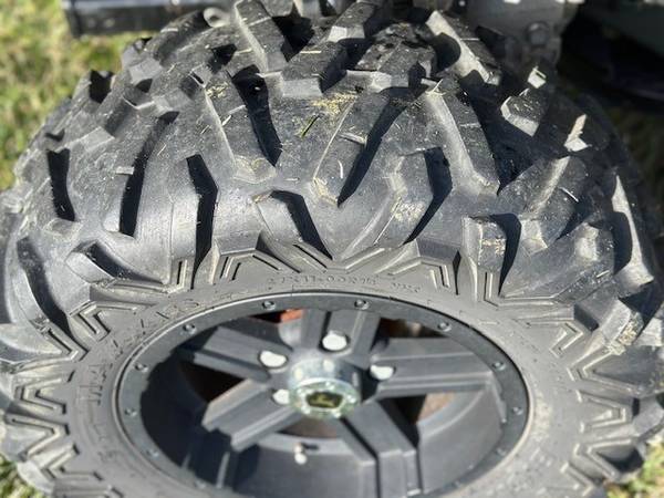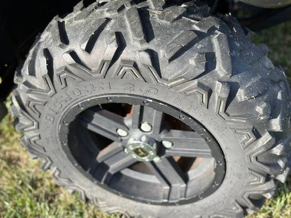 Sport exhaust, brush guard, taillight guards, LED light bar and black alloy wheels.