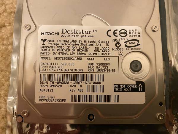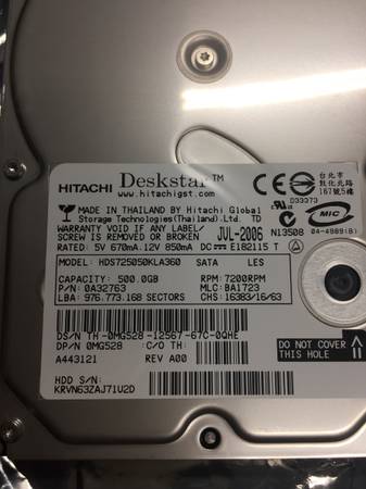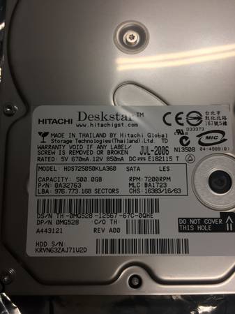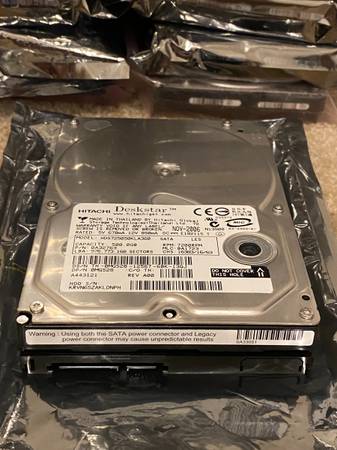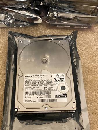 This listing is for 16 Hitachi Deskstar 500 GB SATA Hard Drives. The model numbers are HDS725050KLA360. These are used and we no longer need them. We are cleaning out our parts room. These are in good shape. We will sell them for $20.00 dollars each or you can buy them all. I have been selling these for $20.00.