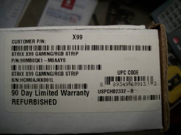 ASUS X99 Motherboard Gaming/RGB Strip LGA 2011-v3 Still in wrapper never installed (REFURBISHED)