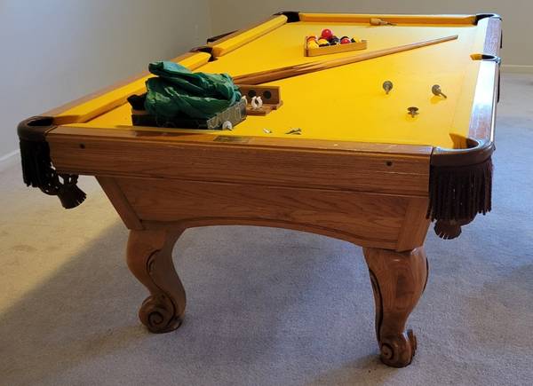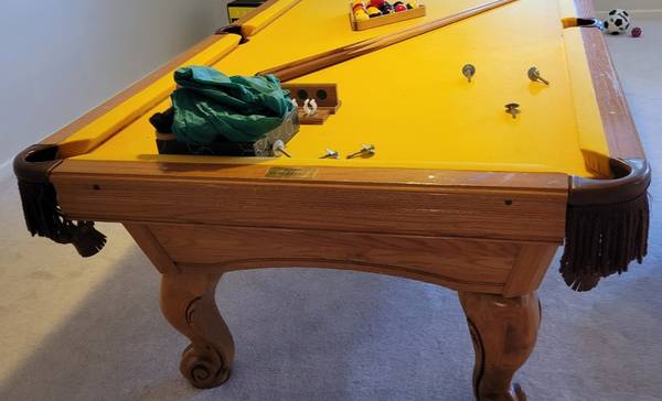 8' AMF Playmaster Belle manufactured in the 90s. Made out of solid oak with a light finish. 1" thick, 3 piece slate table. Comes with a complete play package. Professional set up and delivery. You...