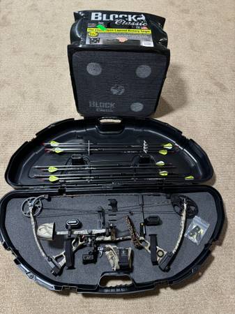 Case, quiver, fiber-optic sight, drop-away arrow rest, 11 carbon-fiber custom hunting arrows, broad heads, field points, trigger release, target and Owner’s Manual.
