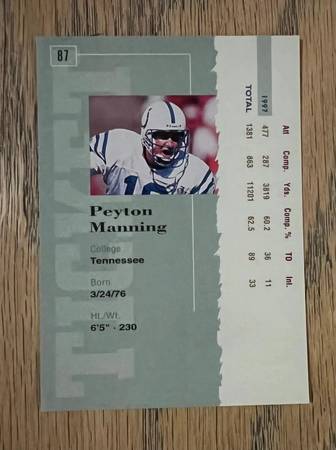 1998 Playoff Contenders #87 Peyton Manning Rookie Ticket Autograph Reprint Football Card