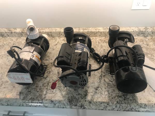 Disassembled my good working hot tub because we simply stopped using it. We got too lazy to walk out and use it. So, I have 2 working 220 volt pumps that can be switched to 110 volt I have a 110...