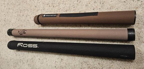 Three fly rod tubes. Two are 9ft/4pc tubes. One is a 9ft/6pc tube. $5 each.