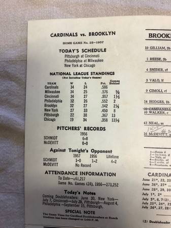 1957 cardinals program. Many old players you will recognize. Musial, Boyer, etc, check pics. Thanks. Call Curt if interested.