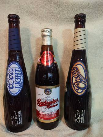 Two Baseball Bat Bottles and one other cool looking bottle.