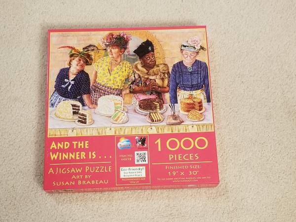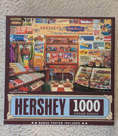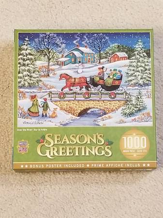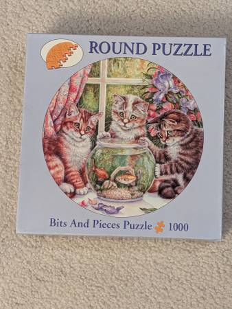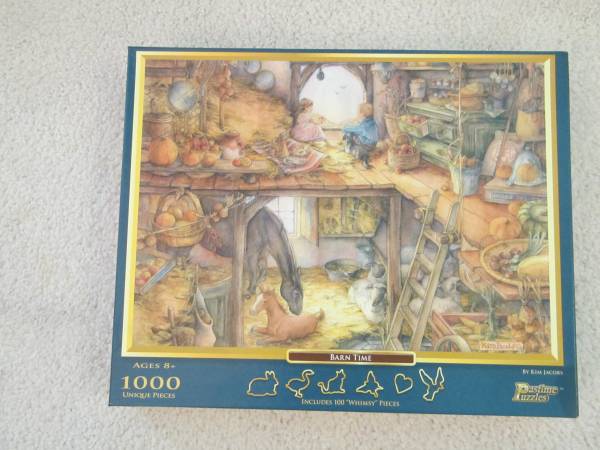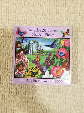 Many jigsaw puzzles, each with 1000 pieces. No missing pieces. Some unique styles. Each puzzle is $8.