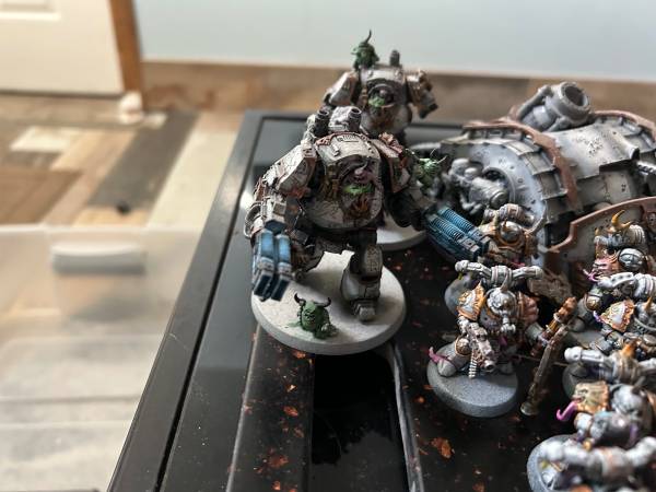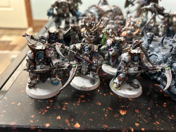large ready for the tabletop Death Guard army. mostly painted some just primed. 6 death shroud terminators death guard rhino 40 pox walkers plague caster tallyman typhus lord of virulence daemon...