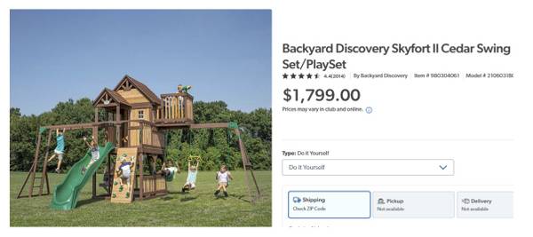 This swing set originally retailed for $1,799 and required about 60 hours of staining and assembly time so the current price of $1,250 is well below the unassembled / unstained playset. Believe me, this set fully stained and assembled will save you an unbelievable amount of time and energy. It also comes with two playground mats for under the swing or at the end of the slide.