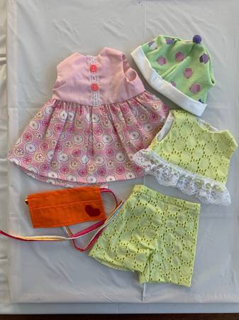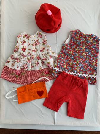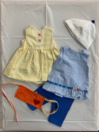 Handmade clothes for 18” dolls like American Girl and Our Generation. Most items have Velcro closures that are easy to fasten. Each set is $3.