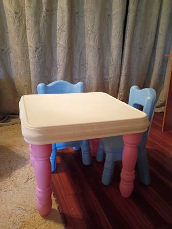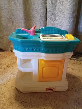 Little Tikes child's table with 2 chairs. pretend stove/sink. box of pretend food and dishes, pots, spoons included. great condition. would make a wonderful Christmas gift for your special little...