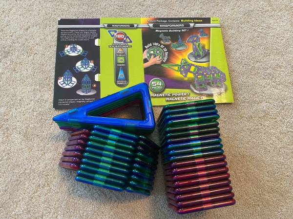 Magformers set with 54 pieces includes instruction/idea book two sets available $40/each